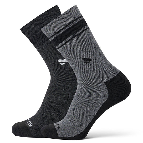 I hike every weekend with my lady & merino wool are must-haves for keeping feet dry & at the perfect temp for the weather. The no-nonsense colors are perfect for us & the cushion on the bottom of the sock makes for a more comfortable climb.