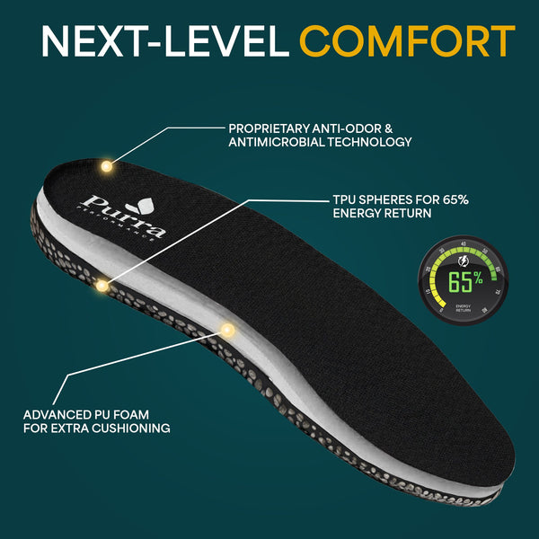 There are many benefits to wearing Purra Performance Antimicrobial socks. They help keep your feet fresh and clean, which can reduce odor and discomfort. They also feature enhanced arch compression and strategic cushioning for maximum comfort, as well as breathable mesh and moisture wicking for keeping your feet cool and dry.