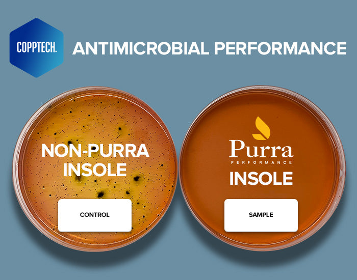 Using a Purra Performance antimicrobial insole offers many benefits. It helps eliminate or reduce foot odor caused by bacteria, fungi or other microorganisms. Additionally, these insoles provide improved comfort, support, impact joint protection and enhanced athletic performance