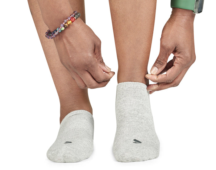 There’s nothing more annoying (or pointless) than when a super no-show sock slides down your heel and bunches up in your shoe. A silicone grip inside the heel provides a stay-put fit, protecting against blisters, while the enhanced arch compression and combed cotton snugly surround your foot in pure comfort.