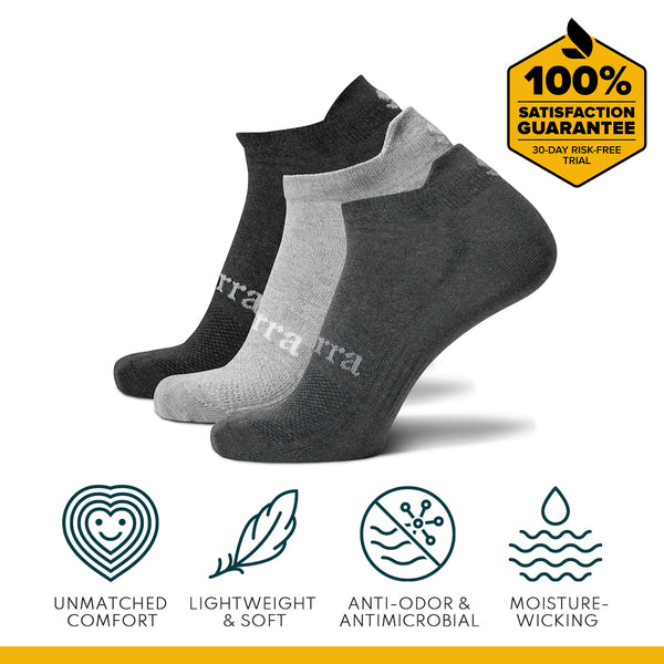 There are many benefits to wearing Purra Performance Antimicrobial socks. They help keep your feet fresh and clean, which can reduce odor and discomfort. They also feature enhanced arch compression and strategic cushioning for maximum comfort, as well as breathable mesh and moisture wicking for keeping your feet cool and dry.