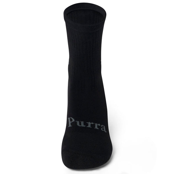 All Purra socks feature a pulled back seamless toe, flat stitching, enhanced arch compression and a deep heel gore to ensure a precise fit.