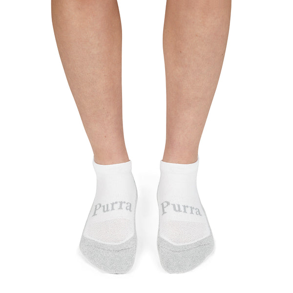 My son wanted different white socks for high school tennis . The Nike and Adidas ones he normally wears did not provide enough cushion and/or support for hard court play. I ordered these Purra socks hoping my teenager would approve and finally we have a winner! He says they are super comfortable with the right amount of cushion that doesn’t cause blisters or soak his feet with sweat! Happy mom and kid…great product, would definitely recommend!