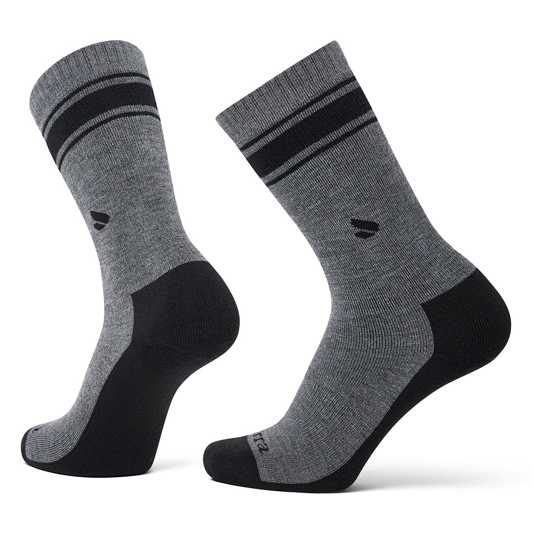I hike every weekend with my lady & merino wool are must-haves for keeping feet dry & at the perfect temp for the weather. The no-nonsense colors are perfect for us & the cushion on the bottom of the sock makes for a more comfortable climb.