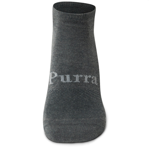Purra integrates Copptech antimicrobial technology with a breathable mesh to facilitate the dissipation of heat and moisture, The socks also utilize strategically placed yarns that efficiently wick sweat and moisture from your foot towards the outer surface of the sock, enabling them to evaporate. Keeping your feet fresh, cool and dry.