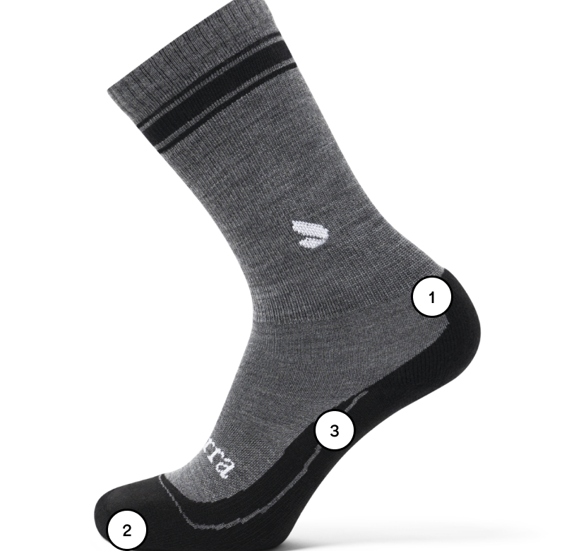 Our traceable virgin merino wool yarns are inherently breathable and temperature regulating, allowing heat and vapor to escape from the sock while also ensuring your feet stay climate controlled - not too cold in the winter and not too hot in the summer.