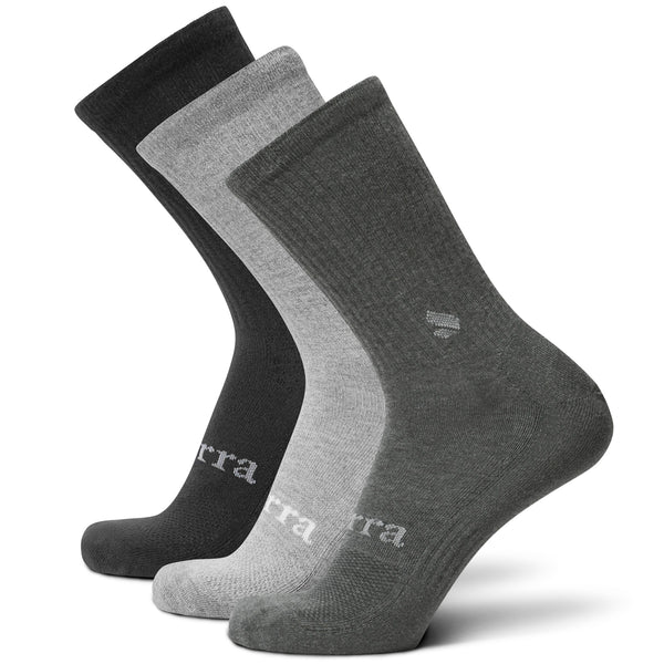 I own three pairs of Purra socks and rarely take them off. We recently traveled to NY & DC and they were my constant companion on the plane, through the rainy cold streets of NY, and the 8-mile walk around DC. They're warm, they're cushioned, and they stand up to both weather and long wear while still feeling fresh after long days. When you do wash them, they come out looking brand new. Can't say enough great things about these great socks. Will buy another 3 pair so I have a pair for every day.