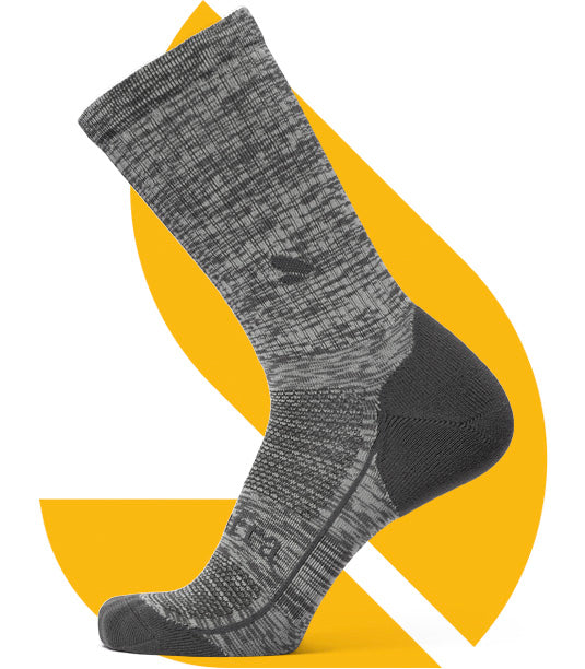 Our temperature regulation technology and moisture management prevent hot and soggy socks. Wicking yarns move sweat away from the skin and to the surface of the sock, where the breathable mesh allows the heat and vapor to evaporate so feet stay cool and dry.