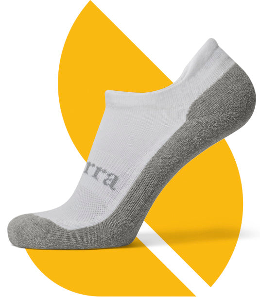 Our temperate regulation tech ensures feet stay comfortably cool. Synthetic yarns wick moisture away from the skin and to the surface of the sock, where our breathable mesh allows the heat and sweat to escape so feet stay dry.