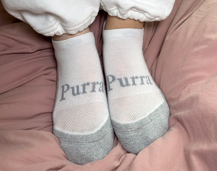 I’ve taken on the Purra Sock Challenge. I have been wearing the same pair of socks for the last two days now. I wore them to a holiday party, then to bed, to work, then crawled to the gym. I wouldn't say I love the thought of being smelly, especially my feet! While using Purra socks, I did not notice an odor and was surprised when smelling my socks after a long day and not being embarrassed. I was shocked by the antimicrobial technology in the socks! The design is also fabulous! When I workout the back of my shoe rubs on my heel/Achilles. While wearing Purra's 'Comfort No Show' socks I noticed the design of the socks stopped my shoe from rubbing on my Achilles. The socks provide a perfect level of comfort and cushion. I highly recommend these socks to people who are on the go and have an active lifestyle. I will definitely be adding these to my Christmas list!